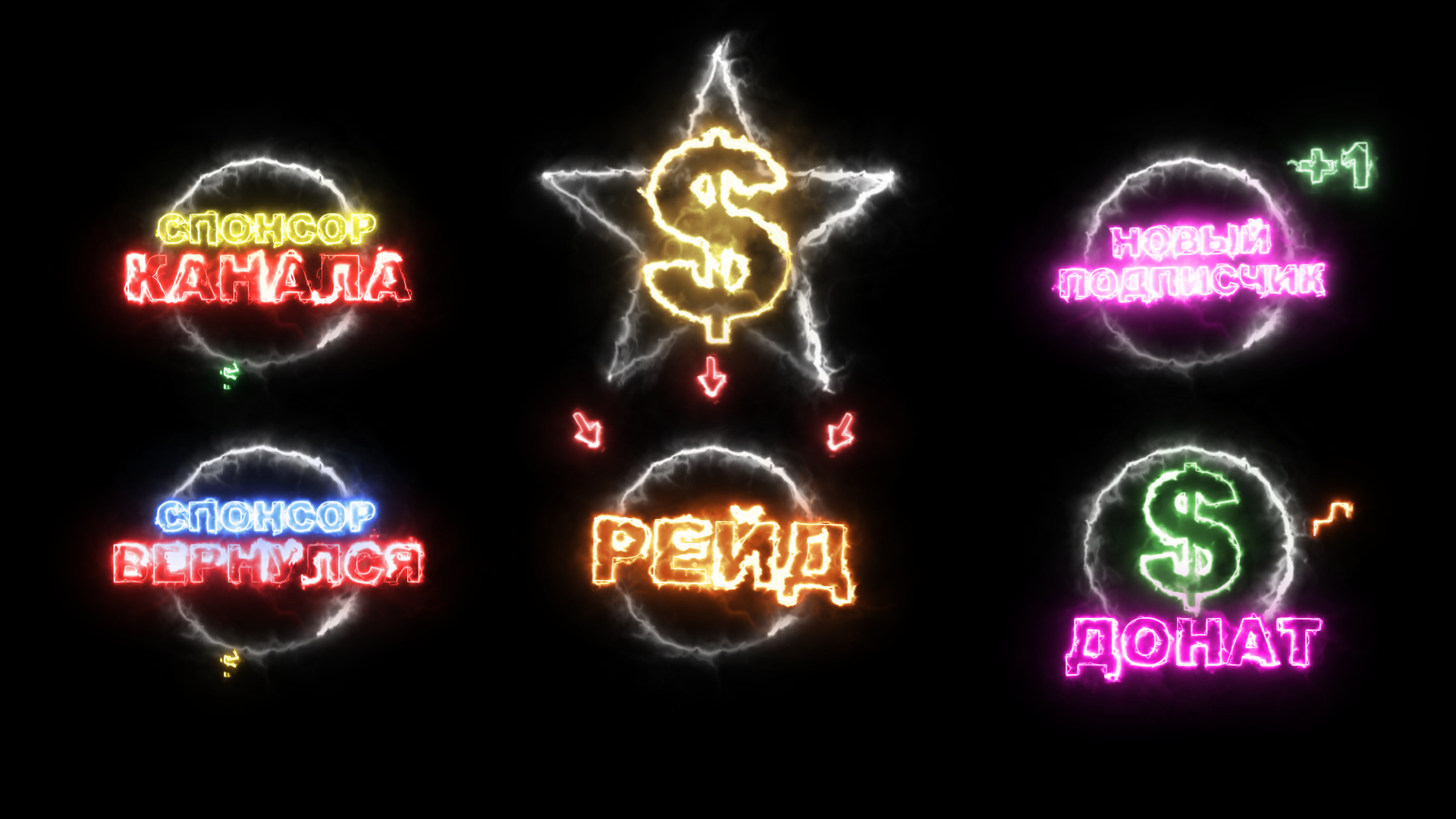 - После оплаты вы получаете набор анимаций в формате .WEBM с помощью которых вы можете создать оповещения на свой стрим. К примеру использовав программу RUTONYCHAT. Анимации не являются полноценным оповещением на стриме, а лишь придают красивую визуальную составляющую, а вся выводимая информация о Подписчиках, Донатах, Спонсорах Канала и т.д. выводится при помощи RUTONYCHAT или иной программы. Если вы не знаете, что это такое, как использовать, вы в праве отказаться от оформления заказа, оплаты товара, далее см. Правила и Условия при оплате. Оплаченный заказ отменить нельзя, после оплаты товара деньги не возвращаются.