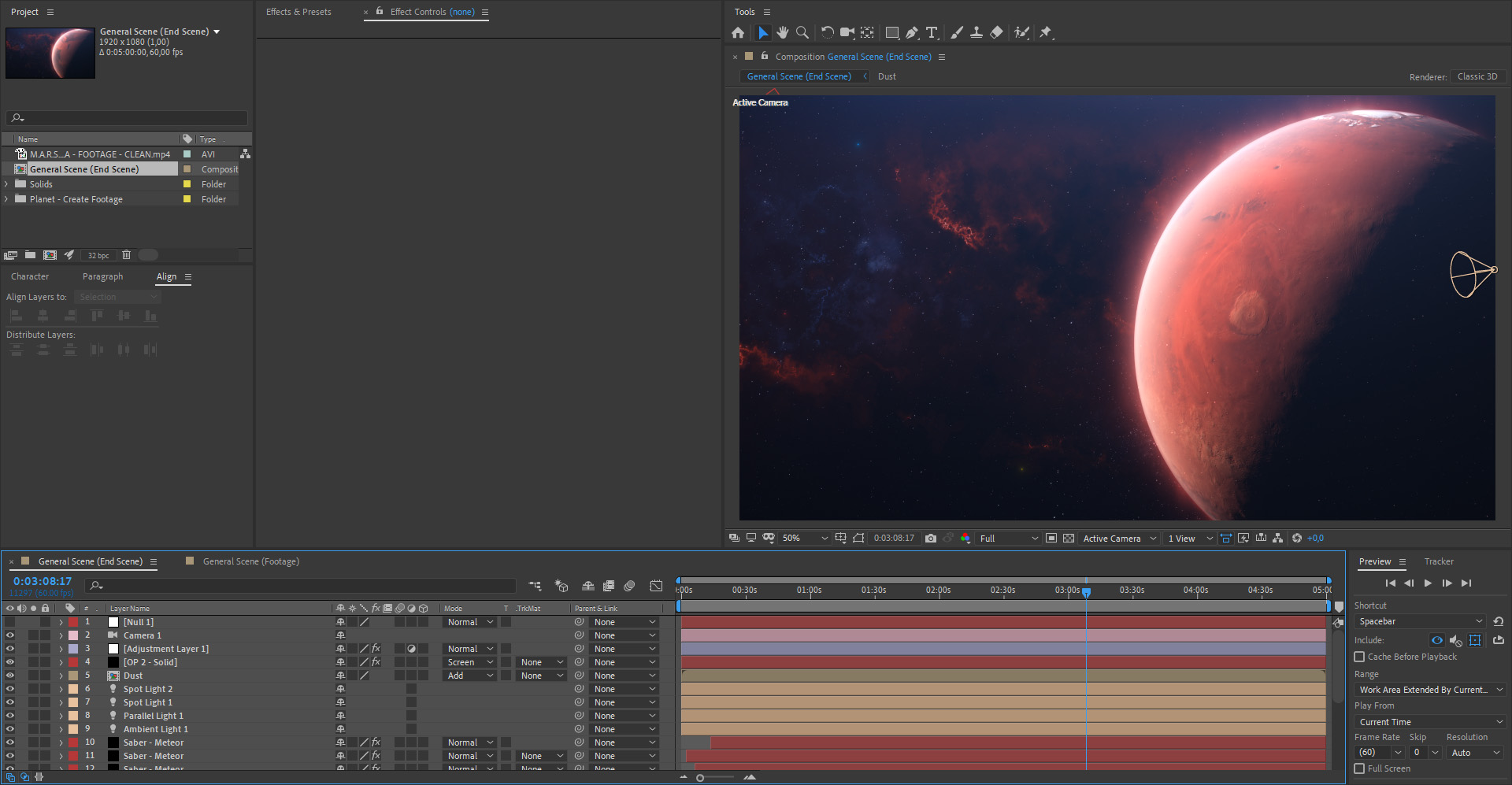 - Сцена создания вращения планеты плюс эффекты: Входит в состав